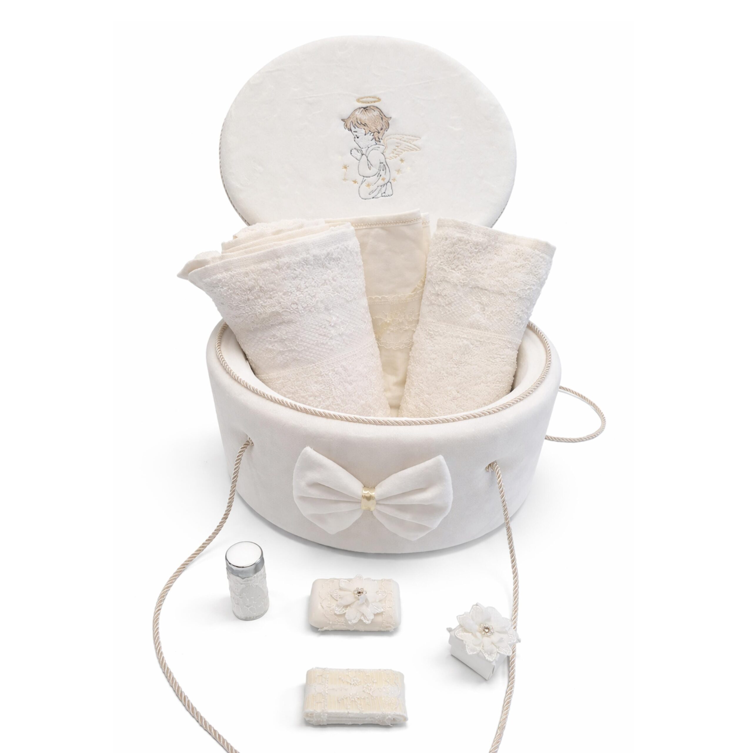 Trusou Botez Cufăr Buretat Ivoar – Little Angel | Set Complet pentru Ziua Botezului