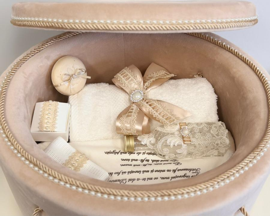 ✔️Cufăr buretat accesorizat cu dantela– Un accesoriu elegant, perfect pentru a păstra amintiri de neprețuit.