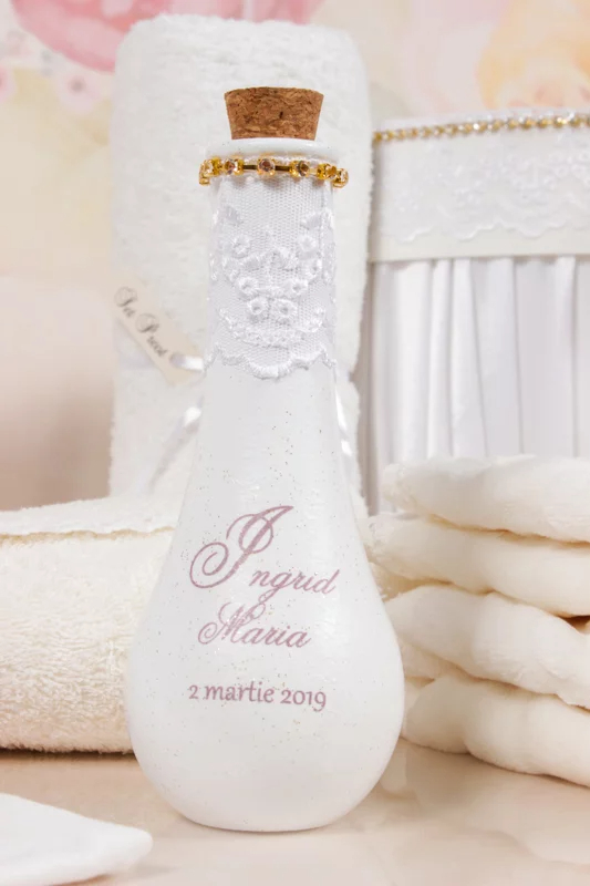 ✔️Sticluță pentru mir personalizata cu nume si data – folosita pentru a mirui proaspatul crestin.