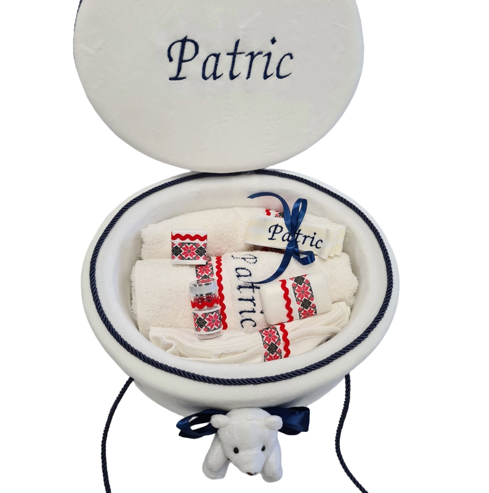 Trusou Botez Luca este realizat manual in atelierul BotezZ.ro. Atelier ce va pune la dispozitie toate cele necesare magicului eveniment al increstinarii. Pentru slujba de botez, pentru masa festiva si pentru baita de a 2-a zi. Trusourile noastre de botez sunt realizate 100% manual.
